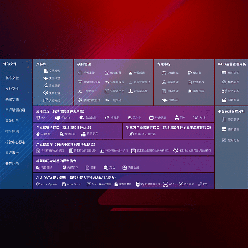 医疗器械产品上市前,,,要熟悉严格与繁复评审标准,,,,整理分析监管机构指导文件中的海量信息。。。。企业急需一个智能化解决方案,,提升知识管理效率,,,,提高评审通过率,,,,以提升其市场竞争力。。。